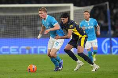 TVPM Napoli, Parma Nella Foto: Leonardo Spinazzola , Mandela Keita Foto Mosca, Ag.Liverani- AGENZIA ALDO LIVERANI SAS -TVPM Napoli - Parma Campionato Calcio Serie A Recupero 16a Giornata 14.01.2026