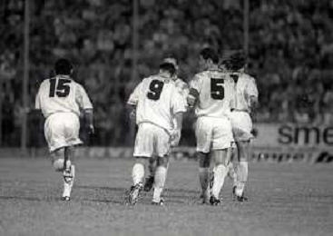 NEG-26-08-1992 REGGIO EMILIA SEDICESIMI DI FINALE DI COPPA ITALIA REGGIANA 3-INTER 4 NELLA FOTO ABBRACCI GIOCATORI INTER DOPO ILGOAL AG ALDO LIVERANI SAS