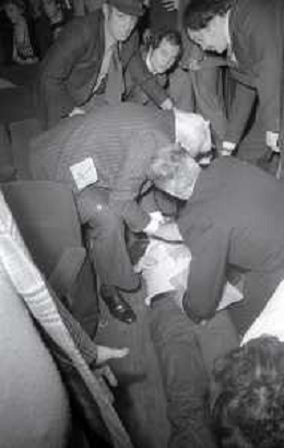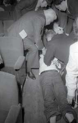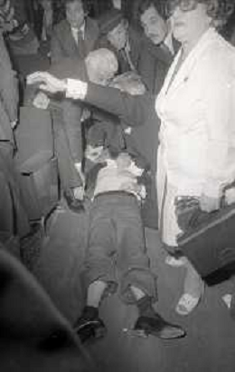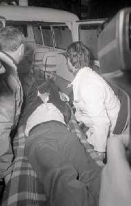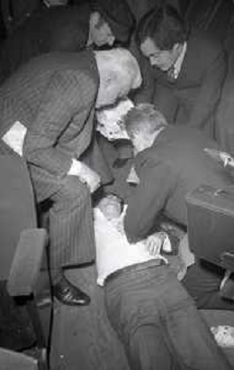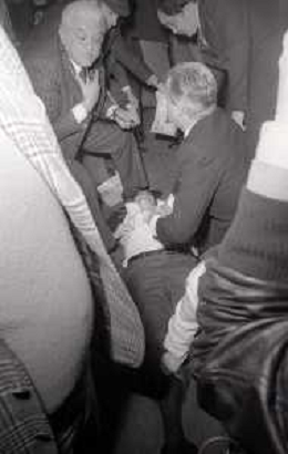 NEG-1977 FESTIVAL DI SANREMO NELLA FOTO IL GIORNALISTA LELLO BERSANI HA AVUTO UN MALORE E VIENE SOCCORSO AG ALDO LIVERANI SAS