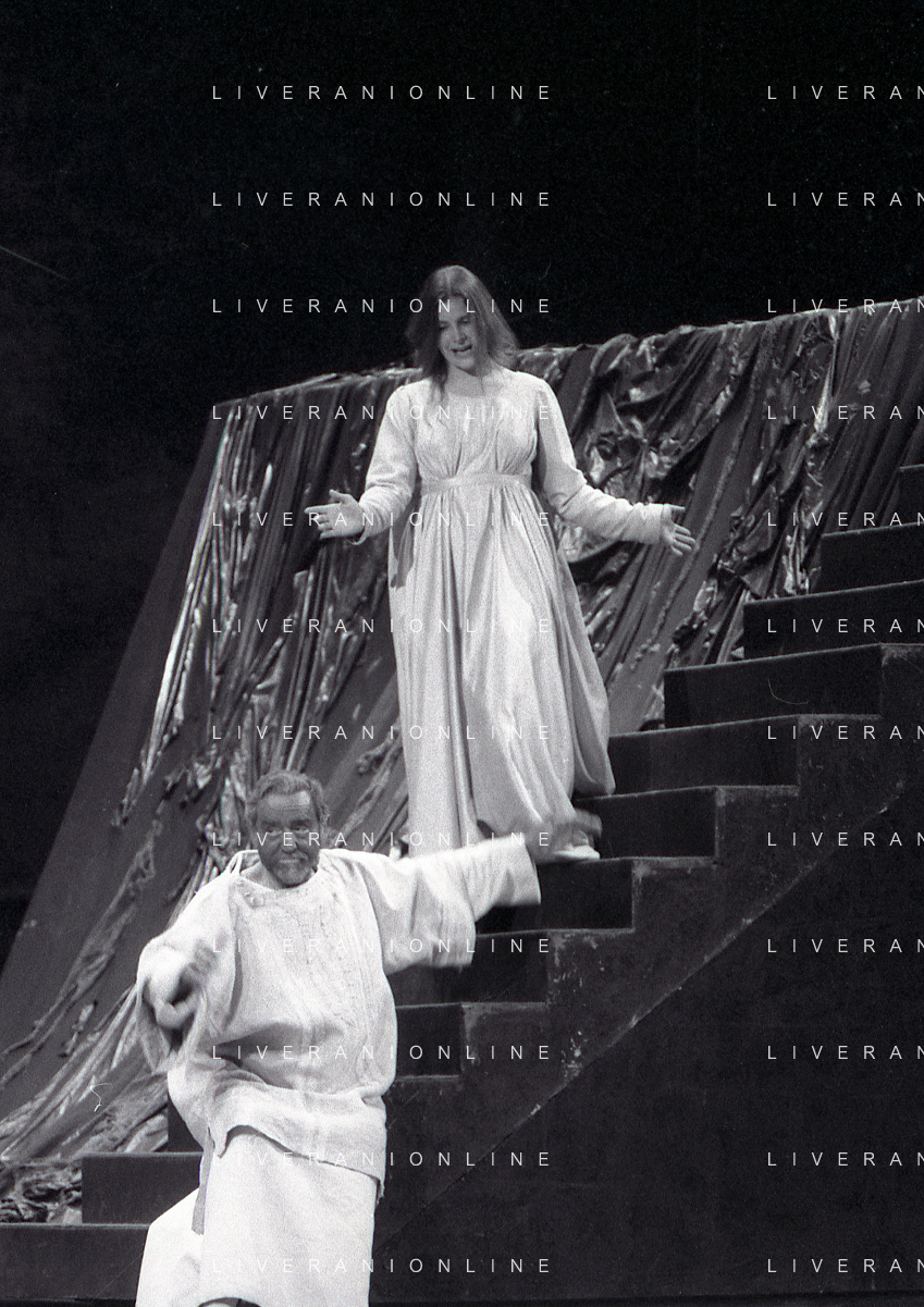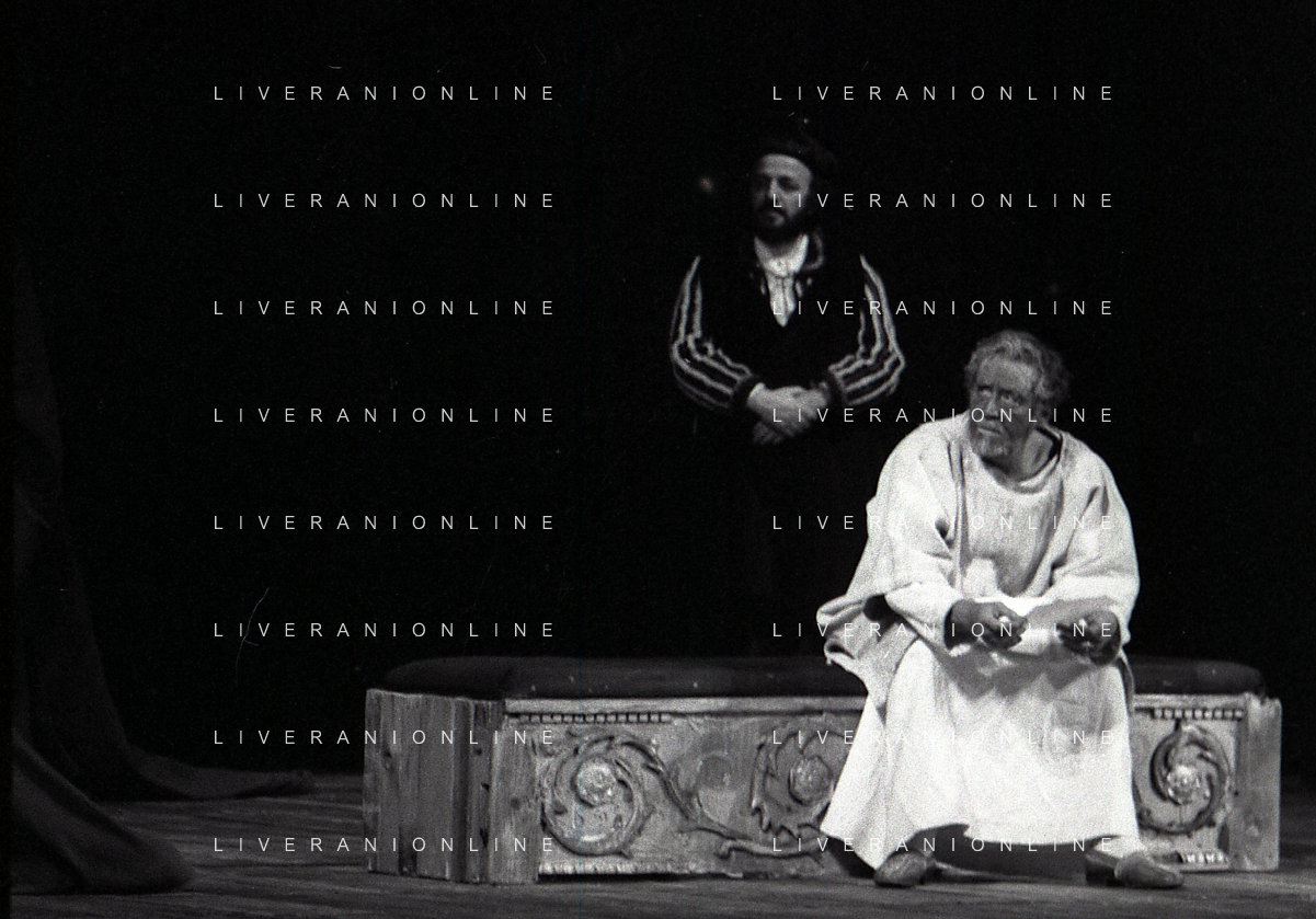 NEG-1982 MILANO COMMEDIA “OTELLO “ CON VITTORIO GASSMAN E PAMELA VILLORESI NELLA FOTO VITTORIO GASSMAN E PAMELA VILLORESI A MILANO NELLA COMMEDIA TEATRALE “OTELLO“ AG ALDO LIVERANI SAS
