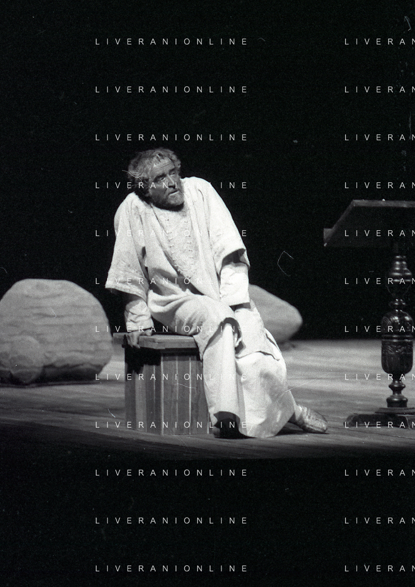 NEG-1982 MILANO COMMEDIA “OTELLO “ CON VITTORIO GASSMAN E PAMELA VILLORESI NELLA FOTO VITTORIO GASSMAN A MILANO NELLA COMMEDIA TEATRALE “OTELLO“ AG ALDO LIVERANI SAS