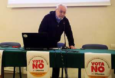 IMOLA 17 01 2026 conferenza stampa di presentazione del Comitato per il NO al referendum Costituzionale. NELLA FOTO IL VIDEO PROIETTATO ©SANNA - AGENZIA ALDO LIVERANI SAS
