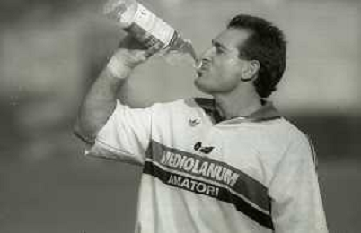 NEG-RETROSPETTIVA DAVID CAMPESE RUGBY NELLA FOTO DAVID CAMPESE CON LA MAGLIA DELLA MEDILANUM MILANO RUGBY NELL'ANNO 1990 AG ALDO LIVERANI SAS
