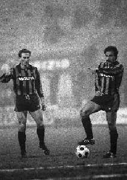 NEG-27-02 1985 MILANO- OTTAVI DI FINALE DI RITORNO DI COPPA ITALIA INTER-EMPOLI 1-0 NELLA FOTO LIAM BRADY E FRANCO CAUSIO AG ALDO LIVERANI SAS