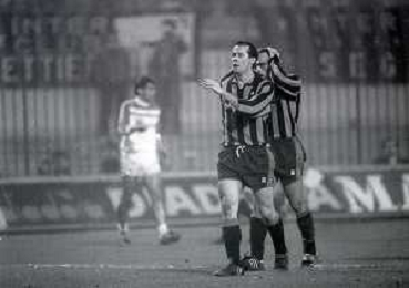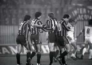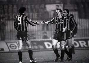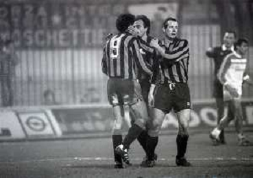 NEG-27-02 1985 MILANO- OTTAVI DI FINALE DI RITORNO DI COPPA ITALIA INTER-EMPOLI 1-0 NELLA FOTO abbracci giocatori inter dopo il goal AG ALDO LIVERANI SAS