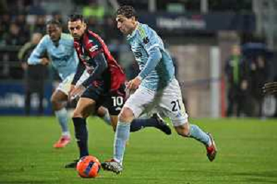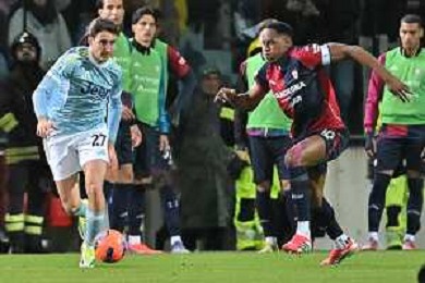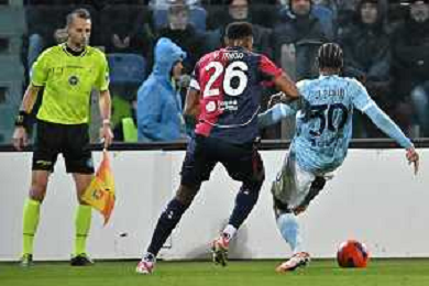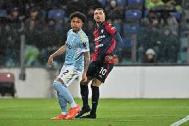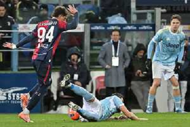 17-1-2026. Cagliari calcio-Juventus F.C., 21° giornata serie A 2025/2026, campionato calcio Italia, stadio Unipol Domus Cagliari. Foto Salvatore Moi/Agenzia Aldo Liverani s.as. Nella foto: Sebastiano Esposito Cagliari, Lloyd Kelly Juventus ©MOI SALVATORE - AGENZIA ALDO LIVERANI SAS