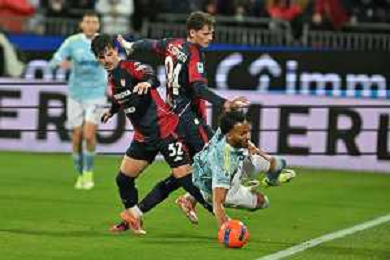 17-1-2026. Cagliari calcio-Juventus F.C., 21° giornata serie A 2025/2026, campionato calcio Italia, stadio Unipol Domus Cagliari. Foto Salvatore Moi/Agenzia Aldo Liverani s.as. Nella foto: Ze’ Pedro Cagliari, Sebastiano Esposito Cagliari, Lloyd Kelly Juventus ©MOI SALVATORE - AGENZIA ALDO LIVERANI SAS