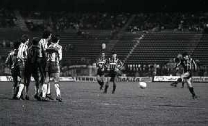 NEG-25-11-1987 MILANO- ANDATA OTTAVI DI FINALE DI COPPA UEFA INTER-ESPANOL 1-1 NELLA FOTO PUNIZIONE DANIEL PASSARELLA AG ALDO LIVERANI SAS
