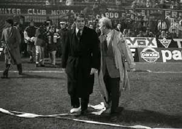 NEG-25-11-1987 MILANO- ANDATA OTTAVI DI FINALE DI COPPA UEFA INTER-ESPANOL 1-1 NELLA FOTO PAOLO GIULIANI E GIOVANNI TRAPATTONI AG ALDO LIVERANI SAS