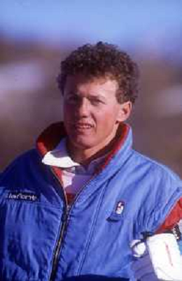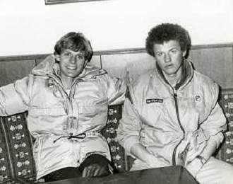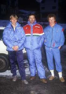ST-RETROSPETTIVA ROBERTO ERLACHER SCI NELLA FOTO ROBERTO ERLACHER NELL'ANNO 1985 CON OSVALDO TORSCH E AL CENTRO MESSNER AG ALDO LIVERANI SAS