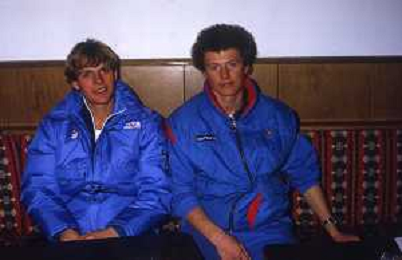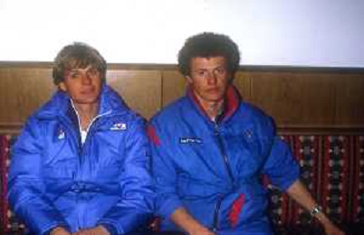 ST-RETROSPETTIVA ROBERTO ERLACHER SCI NELLA FOTO ROBERTO ERLACHER NELL'ANNO 1985 CON OSVALDO TOTSCH AG ALDO LIVERANI SAS