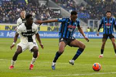 Honest Ahanor of Atalanta BC competes for the ball with Mandela Keita of Parma AC during Atalanta BC vs Parma Calcio, 22° Serie A Enilive 2025-26 game at New Balance arena in Bergamo (BG), Italy, on January 25, 2026. (Photo by Davide Casentini) AGENZIA ALDO LIVERANI SAS