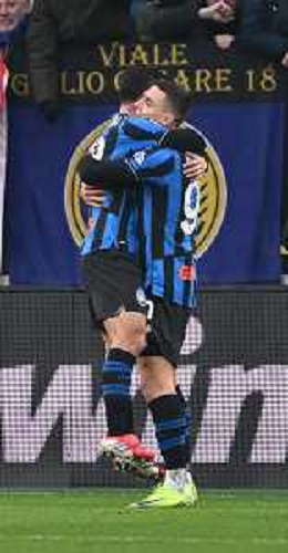 Marten De Roon of Atalanta BC celebrates with team mate during Atalanta BC vs Parma Calcio, 22° Serie A Enilive 2025-26 game at New Balance arena in Bergamo (BG), Italy, on January 25, 2026. (Photo by Davide Casentini) AGENZIA ALDO LIVERANI SAS