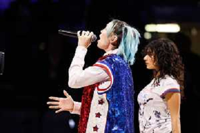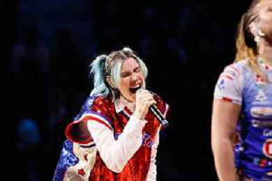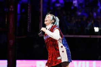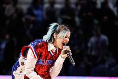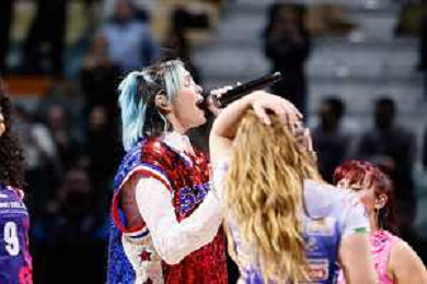 Nella foto Rose Villain in concerto tra le due partite FOTO ANDREA MARANGON - AG ALDO LIVERANI SAS