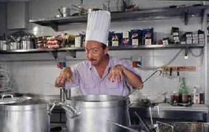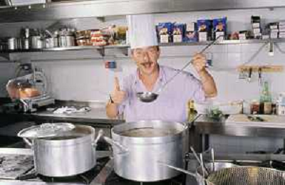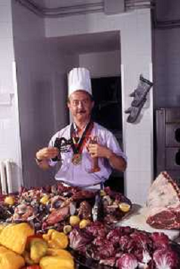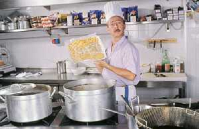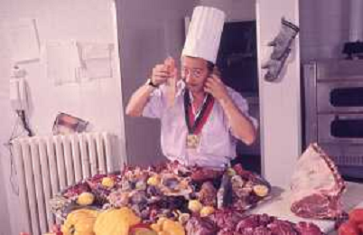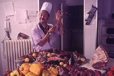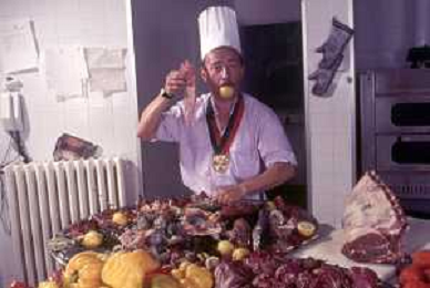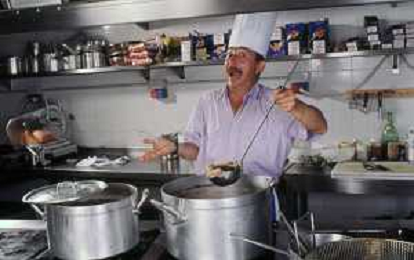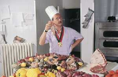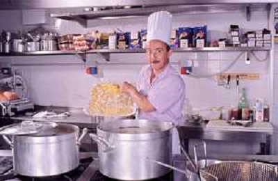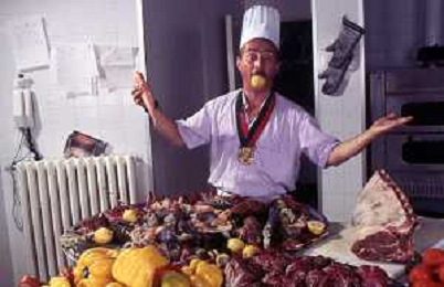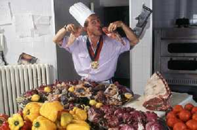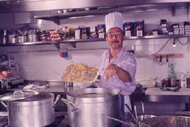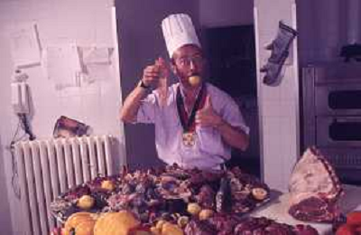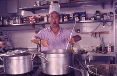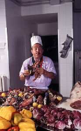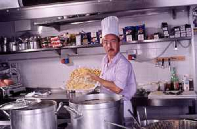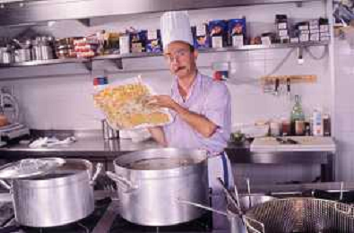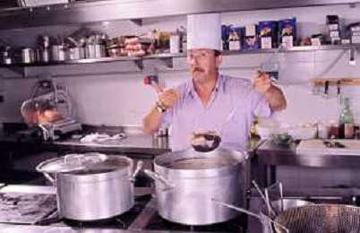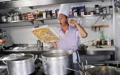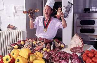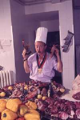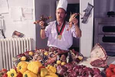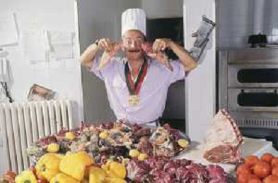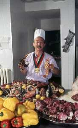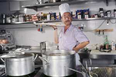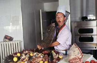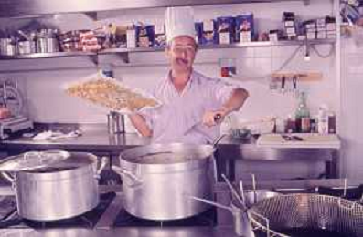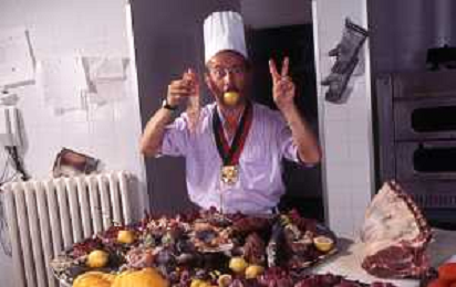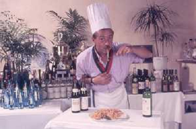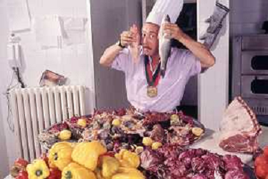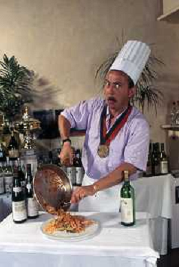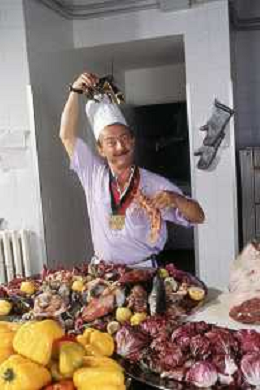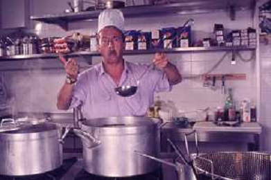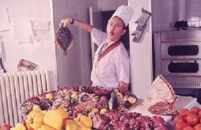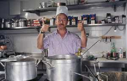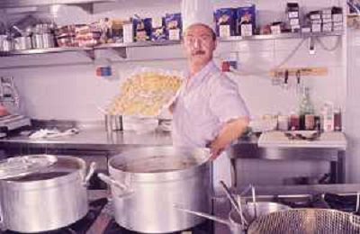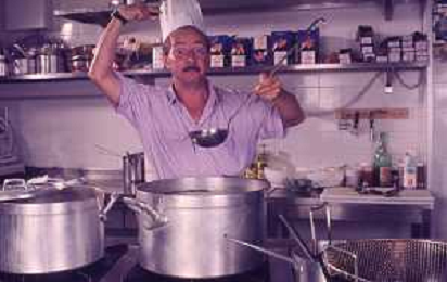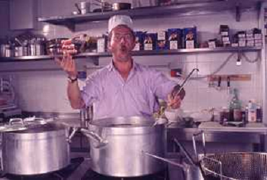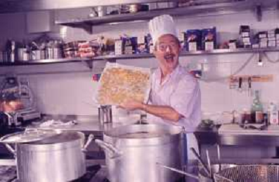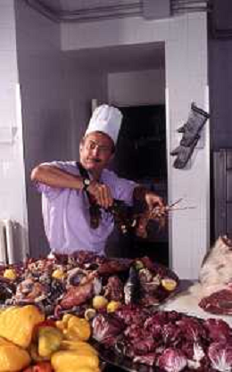 DIAP-RETROSPETTIVA ENZO BRASCHI ATTORE COMICO NELLA FOTO ENZO BRASCHI A MILANO NELL'ANNO 1989 IN CUCINA AG ALDO LIVERANI SAS
