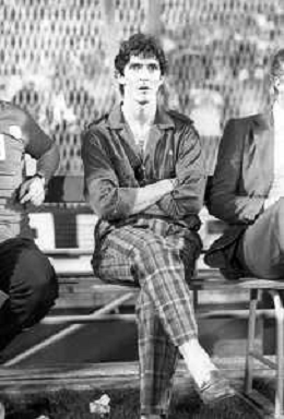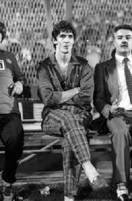 NEG-RETROSPETTIVA COPPA ITALIA 1984-1985 ATALANTA vs JUVENTUS 2 : 2 BERGAMO 02.09.1984 NELLA FOTO IL CALCIATORE PAOLO ROSSI IN BORGHESE IN PANCHINA AGENZIA ALDO LIVERANI SAS