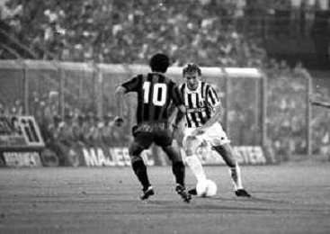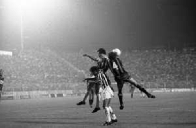 NEG-RETROSPETTIVA COPPA ITALIA 1984-1985 ATALANTA vs JUVENTUS 2 : 2 BERGAMO 02.09.1984 NELLA FOTO CONTRASTO AZIONE DI GIOCO AGENZIA ALDO LIVERANI SAS