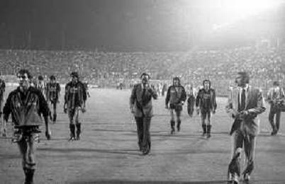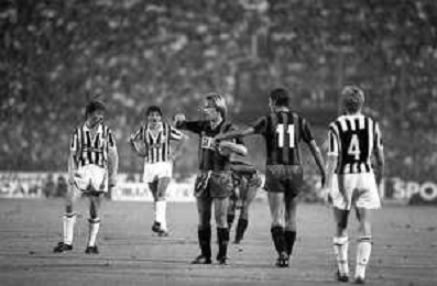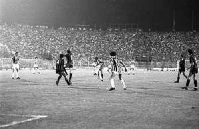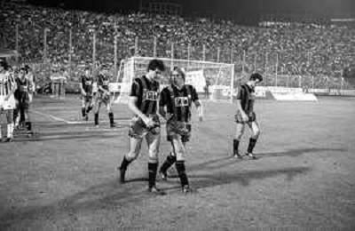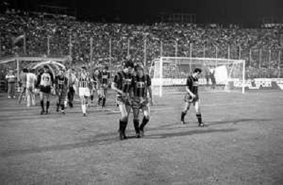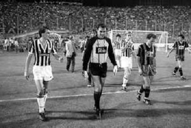 NEG-RETROSPETTIVA COPPA ITALIA 1984-1985 ATALANTA vs JUVENTUS 2 : 2 BERGAMO 02.09.1984 NELLA FOTO L’ENTRATA IN CAMPO GIOCATORI E TERNA ABITRALE CON L’ARBITRO ROMEO PAPARESTA AGENZIA ALDO LIVERANI SAS