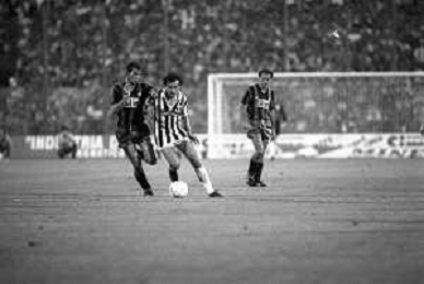 NEG-RETROSPETTIVA COPPA ITALIA 1984-1985 ATALANTA vs JUVENTUS 2 : 2 BERGAMO 02.09.1984 NELLA FOTO SAURO FATTORI AGENZIA ALDO LIVERANI SAS
