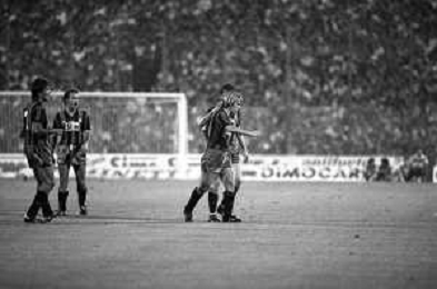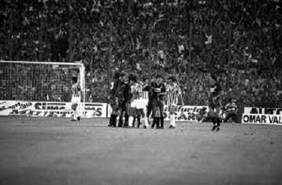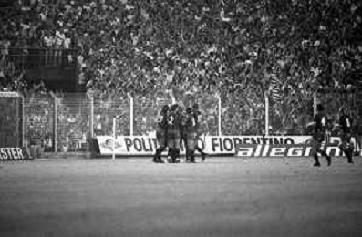 NEG-RETROSPETTIVA COPPA ITALIA 1984-1985 ATALANTA vs JUVENTUS 2 : 2 BERGAMO 02.09.1984 NELLA FOTO ESULTANZA TIFOSI AGENZIA ALDO LIVERANI SAS