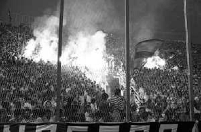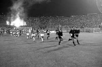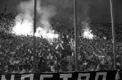 NEG-RETROSPETTIVA COPPA ITALIA 1984-1985 ATALANTA vs JUVENTUS 2 : 2 BERGAMO 02.09.1984 NELLA FOTO FUMOGENI SUGLI SPALTI DEI TIFOSI AGENZIA ALDO LIVERANI SAS