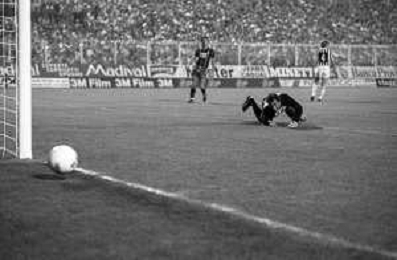 NEG-RETROSPETTIVA COPPA ITALIA 1984-1985 ATALANTA vs JUVENTUS 2 : 2 BERGAMO 02.09.1984 NELLA FOTO IL PORTIERE DELL’ATALANTA GIULIO DRAGO E MARCO TARDELLI AGENZIA ALDO LIVERANI SAS