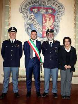 IMOLA 30 01 2026 il Sindaco di Imola Marco Panieri ha ricevuto in Municipio il Commissario Capo del Compartimento Polizia Stradale dell'Emilia-Romagna, Sergio Gaita , in occasione del suo pensionamento NELLA FOTO DA SINISTRA VITTORIO NERI,SERGIO GAITA SINDACO MARCO PANIERI E ANGELA PICCIRILLO POLIZIA DI STATO ©SANNA - AGENZIA ALDO LIVERANI SAS
