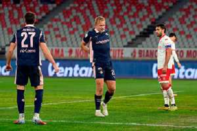 TVEM January 30, 2026 Bari, Italy - SSC Bari vs Palermo FC - Italian Soccer Serie B 2025/2026 - San Nicola Stadium. In the pic: Joel Pohjanpalo of Palermo FC is in pain after scoring the 2-0 goal. ©TVEM Emmanuele Mastrodonato - AGENZIA ALDO LIVERANI SAS
