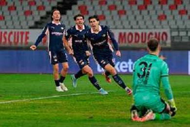TVEM January 30, 2026 Bari, Italy - SSC Bari vs Palermo FC - Italian Soccer Serie B 2025/2026 - San Nicola Stadium. In the pic: Jeremy Le Douaron of Palermo FC celebrates after scoring a goal with teammates ©TVEM Emmanuele Mastrodonato - AGENZIA ALDO LIVERANI SAS