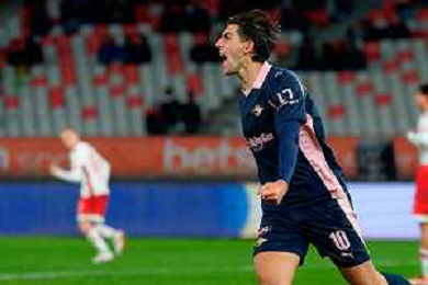 TVEM January 30, 2026 Bari, Italy - SSC Bari vs Palermo FC - Italian Soccer Serie B 2025/2026 - San Nicola Stadium. In the pic: Jeremy Le Douaron of Palermo FC celebrates after scoring a goal ©TVEM Emmanuele Mastrodonato - AGENZIA ALDO LIVERANI SAS