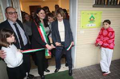 IMOLA 31 01 2026 L’inaugurazione di Cappuccetto Verde, il nuovo spazio - dedicato ai bambini da 0 a 4 anni e ai loro adulti di riferimento NELLA FOTO DA SINISTRA FABRIZIO CASTELLARI CONSIGLIERE REGIONALE E-R,VICE SINDACO ELISA SPADA E ASSESSORE ALLA SCUOLA GIANNA GAMBETTI TAGLIO DEL NASTRO ©SANNA - AGENZIA ALDO LIVERANI SAS