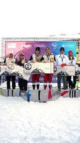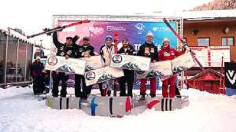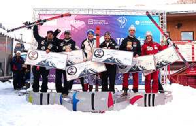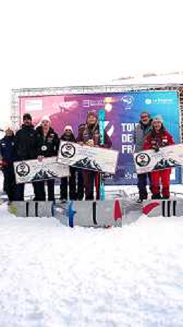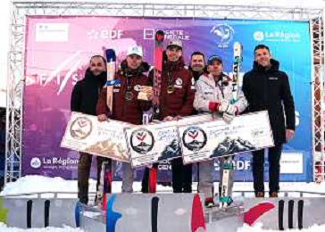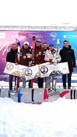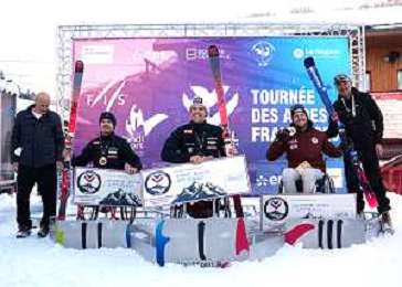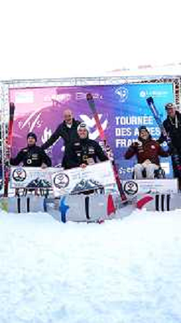 Arthur BAUCHET, FRA, Bib Number 36, Podium Photo, Jules SEGERS, FRA, Bib Number 37, Podium Photo, Robin CUCHE, SUI, Bib Number 41, Podium Photo, Men's Giant Slalom at FIS Para Alpine Skiing World Cup 2025-26 in Meribel, France, 2026-01-29, Photo Credit: action press / Luc Bagouet KARMAPRESS-AG ALDO LIVERANI SAS