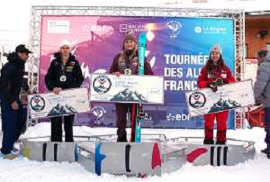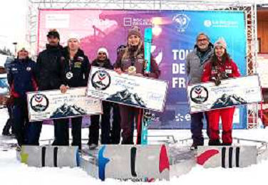Anna-Lena FORSTER, GER, Bib Number 21, Podium Photo, Audrey PASCUAL SECO, ESP, Bib Number 20, Podium Photo, Nette KIVIRANTA, FIN, Bib Number 22, Run 1, Podium Photo, , Women's Giant Slalom at FIS Para Alpine Skiing World Cup 2025-26 in Meribel, France, 2026-01-29, Photo Credit: action press / Luc Bagouet KARMAPRESS-AG ALDO LIVERANI SAS