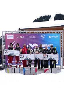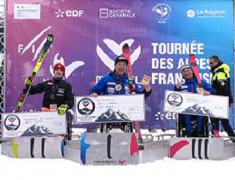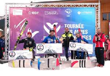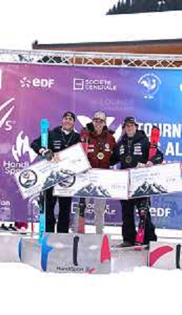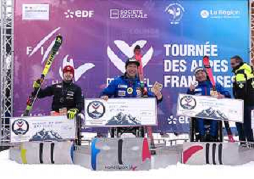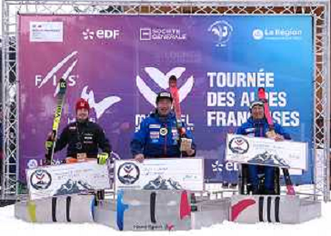 Arthur BAUCHET, FRA, Bib Number 37, Podium Photo, Aaron LINDSTROEM, SWE, Bib Number 39, Podium Photo, Federico PELIZZARI, ITA, Bib Number 38, Podium Photo, , Men's Slalom at FIS Para Alpine Skiing World Cup 2025-26 in Meribel, France, 2026-01-27, Photo Credit: action press / Luc Bagouet AG KARMAPRESS-AG ALDO LIVERANI SAS