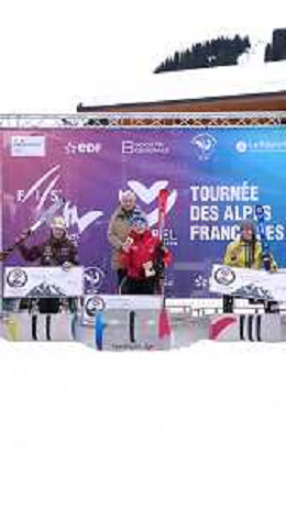 Elina STARY, AUT, Bib Number 5, Podium Photo, Veronika AIGNER, AUT, Bib Number 2, Podium Photo, Martina VOZZA, ITA, Bib Number 4, Podium Photo, , Women's Slalom at FIS Para Alpine Skiing World Cup 2025-26 in Meribel, France, 2026-01-27, Photo Credit: action press / Luc Bagouet AG KARMAPRESS-AG ALDO LIVERANI SAS