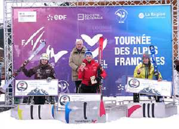 Anna-Lena FORSTER, GER, Bib Number 24, Podium Photo, Nette KIVIRANTA, FIN, Bib Number 25, Podium Photo, Audrey PASCUAL SECO, ESP, Bib Number 23, Podium Photo, , Women's Slalom at FIS Para Alpine Skiing World Cup 2025-26 in Meribel, France, 2026-01-27, Photo Credit: action press / Luc Bagouet AG KARMAPRESS-AG ALDO LIVERANI SAS