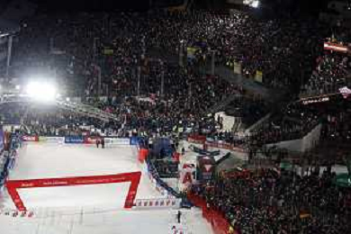 Event Photo, fans, spectators, grandstand, crowd, Men's Slalom at Audi FIS Ski World Cup 2025-26 in Schladming, Austria, 2026-01-28, Photo Credit: action press / Simon Hausberger ag karmapress-ag aldo liverani sas