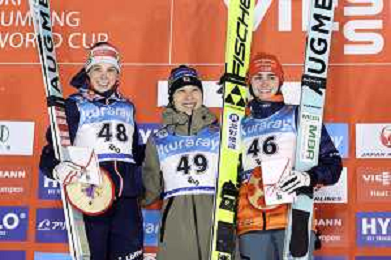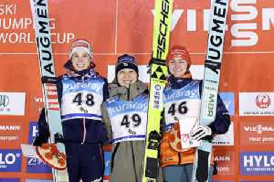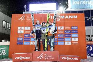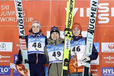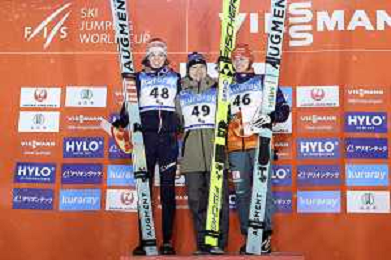 Lisa EDER, AUT, bib number 48, Nozomi MARUYAMA, JPN, bib number 49, Selina FREITAG, GER, bib number 46, Podium Photo, Women's Normal Hill HS102 at Viessmann FIS Ski Jumping World Cup 2025-26 in Zao, Japan, 2026-01-20, Photo Credit: action press / Taro Tampo AG KARMAPRESS-AG ALDO LIVERANI SAS