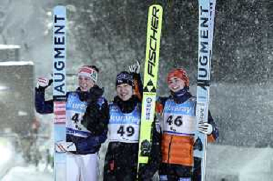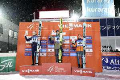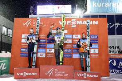 Lisa EDER, AUT, bib number 48, Nozomi MARUYAMA, JPN, bib number 49, Selina FREITAG, GER, bib number 46, Podium Photo, Women's Normal Hill HS102 at Viessmann FIS Ski Jumping World Cup 2025-26 in Zao, Japan, 2026-01-20, Photo Credit: action press / Taro Tampo AG KARMAPRESS-AG ALDO LIVERANI SAS