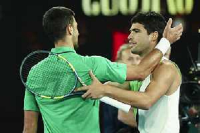 Novak Djokovic und Carlos Alcaraz im Finale bei den Australian Open in Melbourne. AG KARMAPRESS-AG ALDO LIVERANI SAS