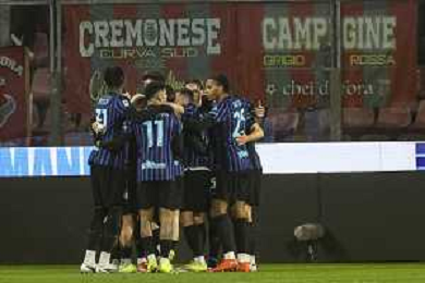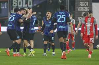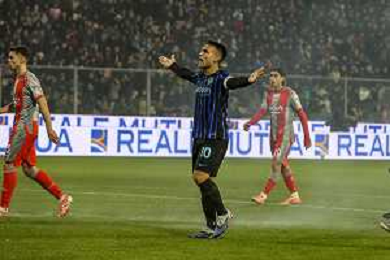 Lautaro Martínez of Inter FC celebrates with team after scoring during US Cremonese vs Internazionale FC, 23° Serie A Enilive 2025-26 game at Giovanni Zini stadium in Cremona (CR), Italy, on January 25, 2026. (Photo by Davide Casentini)I- AGENZIA ALDO LIVERANI SAS