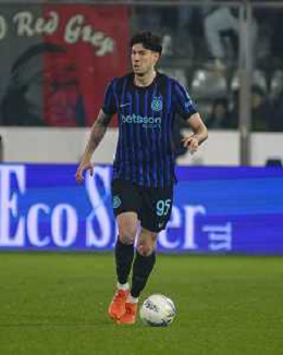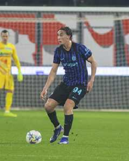Francesco Pio Esposito of Inter FC play the ball during US Cremonese vs Internazionale FC, 23° Serie A Enilive 2025-26 game at Giovanni Zini stadium in Cremona (CR), Italy, on January 25, 2026. (Photo by Davide Casentini)I- AGENZIA ALDO LIVERANI SAS