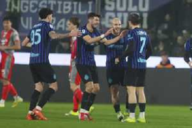 Davide Frattesi of Inter FC and Luis Henrique of Inter FC celebrates Piotr Zielinski of Inter FC goal during US Cremonese vs Internazionale FC, 23° Serie A Enilive 2025-26 game at Giovanni Zini stadium in Cremona (CR), Italy, on January 25, 2026. (Photo by Davide Casentini)I- AGENZIA ALDO LIVERANI SAS
