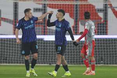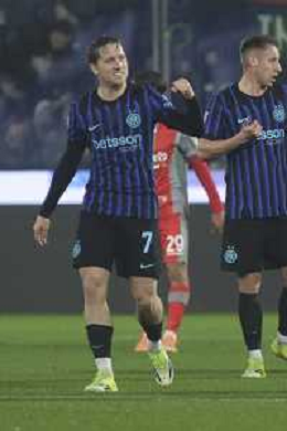 Piotr Zielinski of Inter FC celebrates with team mate during US Cremonese vs Internazionale FC, 23° Serie A Enilive 2025-26 game at Giovanni Zini stadium in Cremona (CR), Italy, on January 25, 2026. (Photo by Davide Casentini)I- AGENZIA ALDO LIVERANI SAS