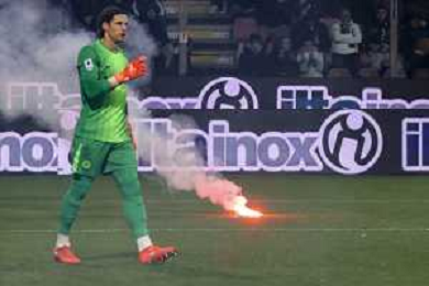 Inter FC's Yann Sommer and a torchduring US Cremonese vs Internazionale FC, 23° Serie A Enilive 2025-26 game at Giovanni Zini stadium in Cremona (CR), Italy, on January 25, 2026. (Photo by Davide Casentini)I- AGENZIA ALDO LIVERANI SAS