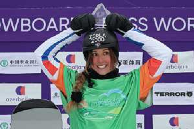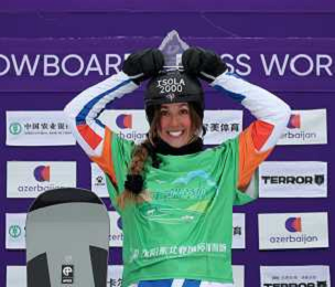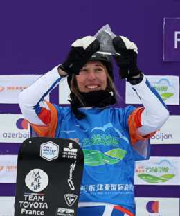 Julia NIRANI-PEREIRA, FRA, bib number 5, Winner Photo, Podium Photo, Women's Snowboard Cross at FIS Snowboard World Cup 2025-26 in Dongbeiya, China, 2026-01-18, Photo Credit: action press / Miha Matavz AG KARMAPRESS-AG ALDO LIVERANI SAS