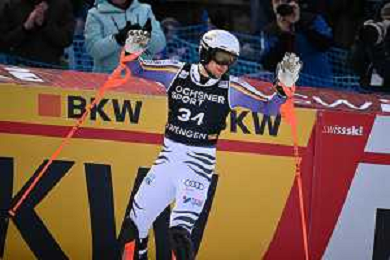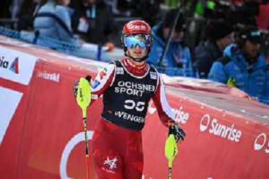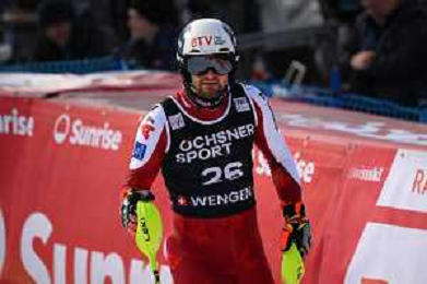 Ramon ZENHAEUSERN, SUI, bib number 33, Action Photo, Men's Slalom at Audi FIS Ski World Cup 2025-26 in Wengen, Switzerland, 2026-01-18, Photo Credit: action press / Markus Ulmer AG KARMAPRESS-AG ALDO LIVERANI SAS