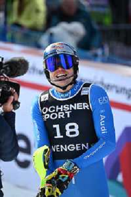 Alex VINATZER, ITA, bib number 18, Action Photo, Men's Slalom at Audi FIS Ski World Cup 2025-26 in Wengen, Switzerland, 2026-01-18, Photo Credit: action press / Markus Ulmer AG KARMAPRESS-AG ALDO LIVERANI SAS