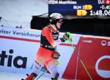 Matthias ITEN, SUI, bib number 44, Action Photo, Men's Slalom at Audi FIS Ski World Cup 2025-26 in Wengen, Switzerland, 2026-01-18, Photo Credit: action press / Markus Ulmer AG KARMAPRESS-AG ALDO LIVERANI SAS