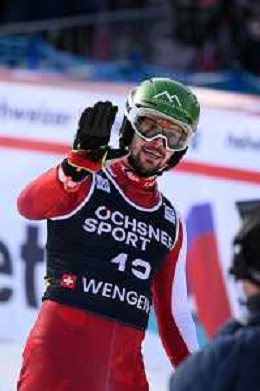 Luca AERNI, SUI, bib number 40, Action Photo, Men's Slalom at Audi FIS Ski World Cup 2025-26 in Wengen, Switzerland, 2026-01-18, Photo Credit: action press / Markus Ulmer AG KARMAPRESS-AG ALDO LIVERANI SAS